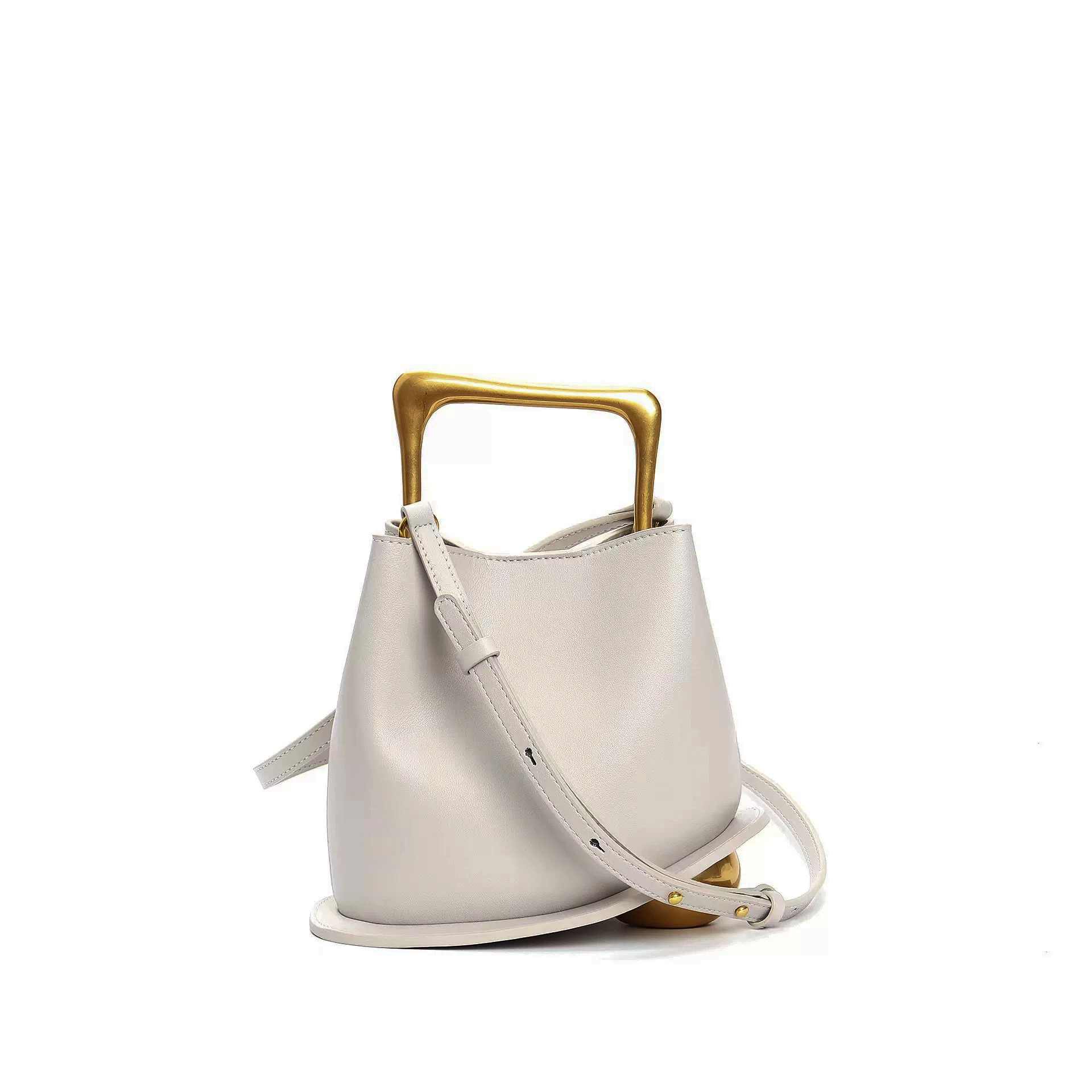 A bolsa Florença em Cinza & Dourado da TUSCAN é uma verdadeira obra-prima do design contemporâneo. Feita em couro premium Italiano, a sua estrutura escultural é acentuada pelo exclusivo detalhe esférico na base e pela alça de metal dourado.