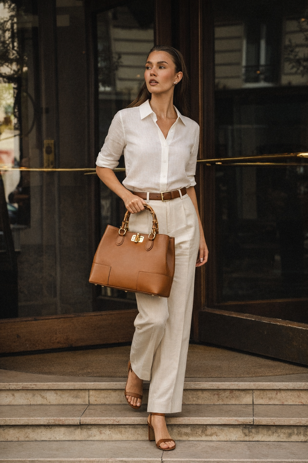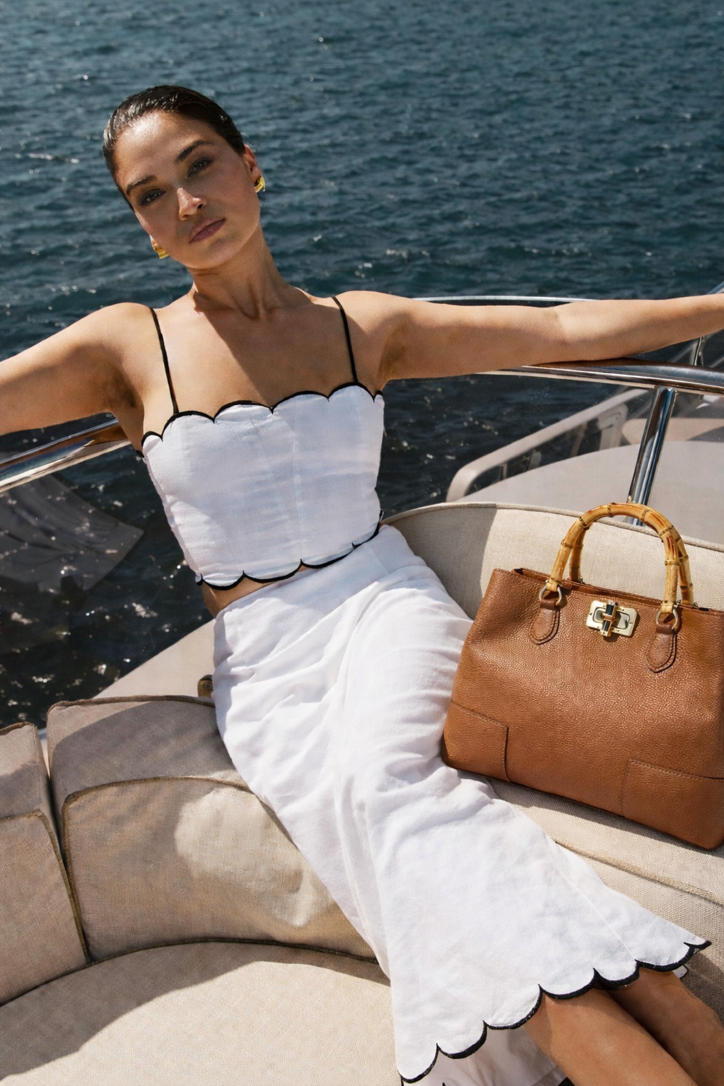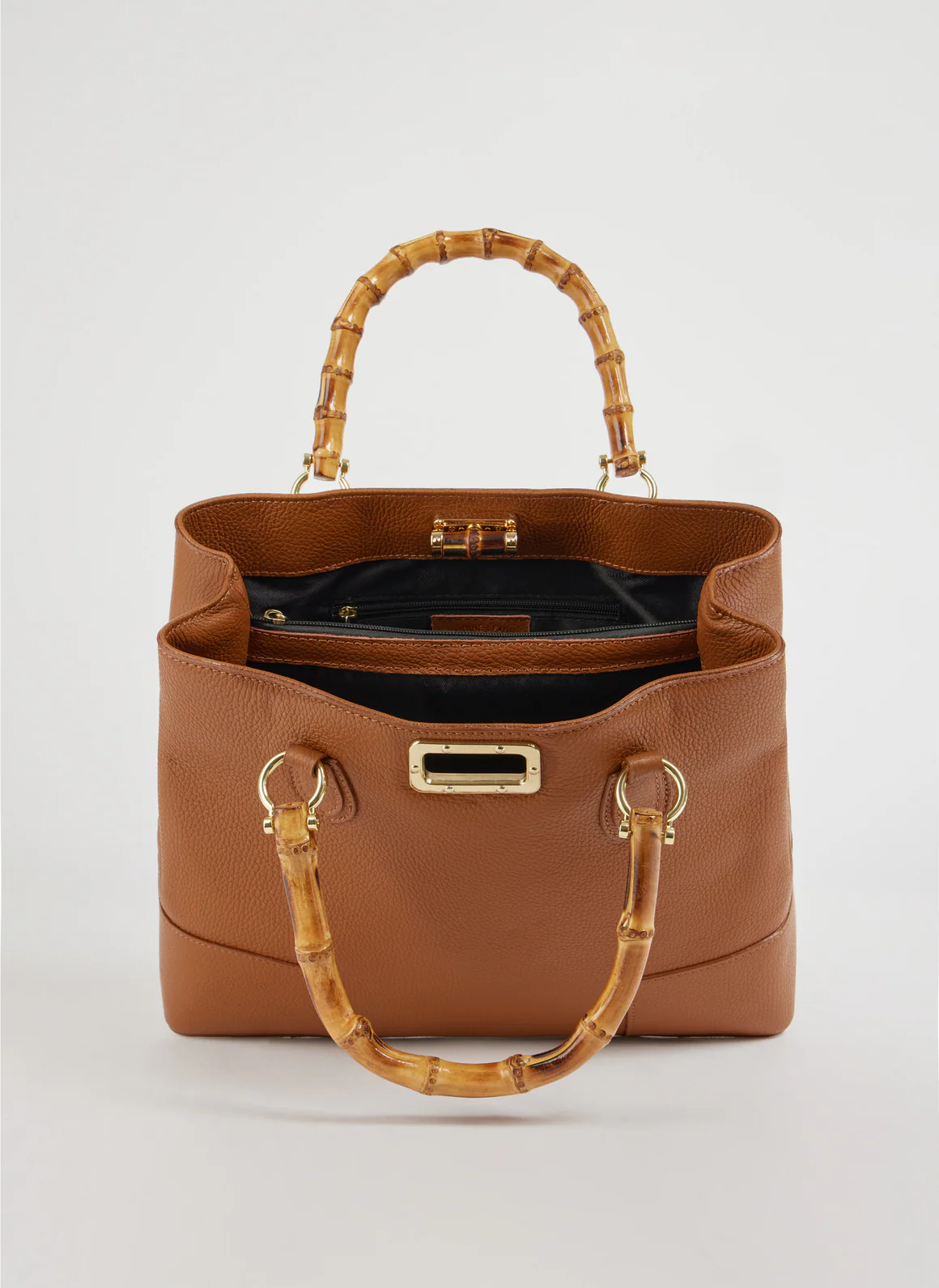 O design é valorizado pelas alças em bambu natural, um detalhe icónico inspirado no estilo italiano clássico. Esta combinação cria uma mala sofisticada, perfeita para mulheres que procuram uma mala de luxo em pele italiana com personalidade.