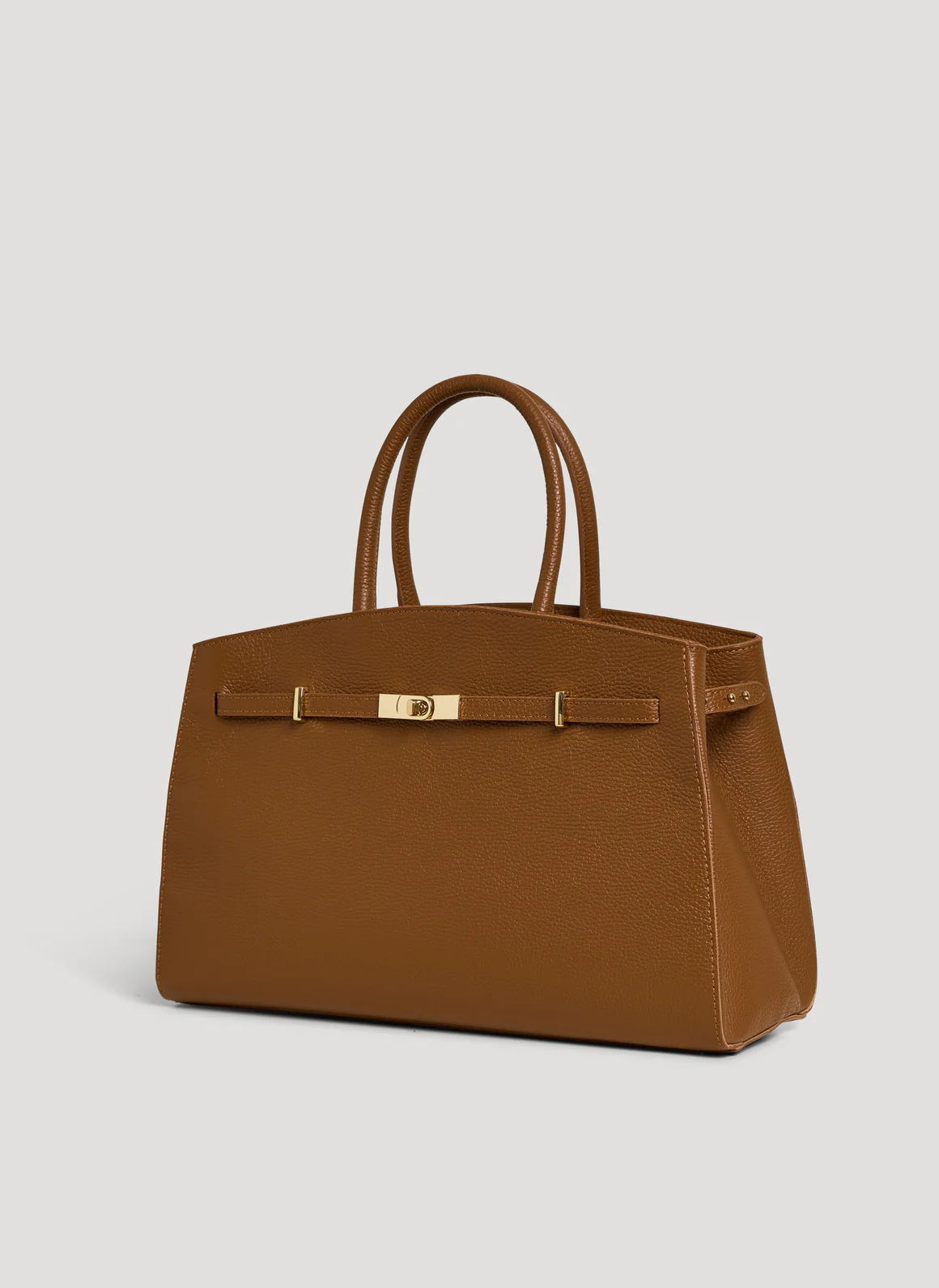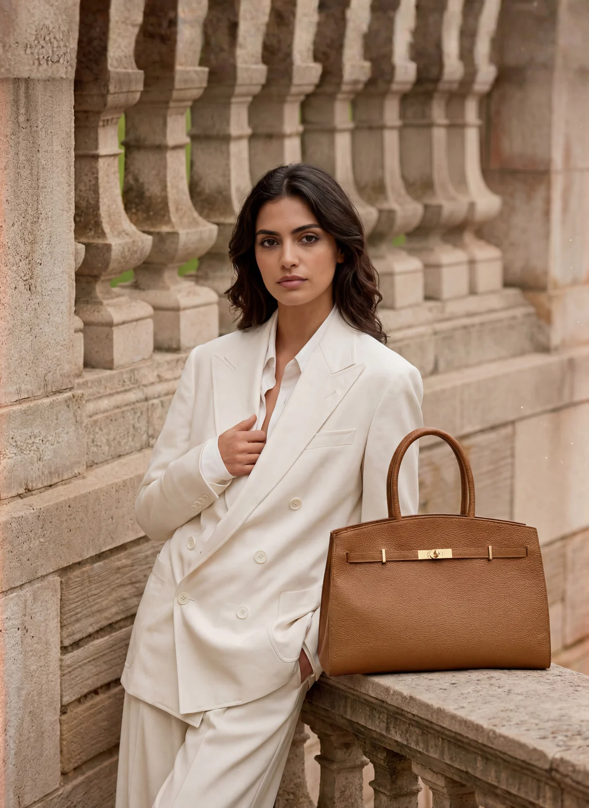 A CECINA é uma mala tote estruturada, pensada para acompanhar o ritmo da cidade com elegância silenciosa.