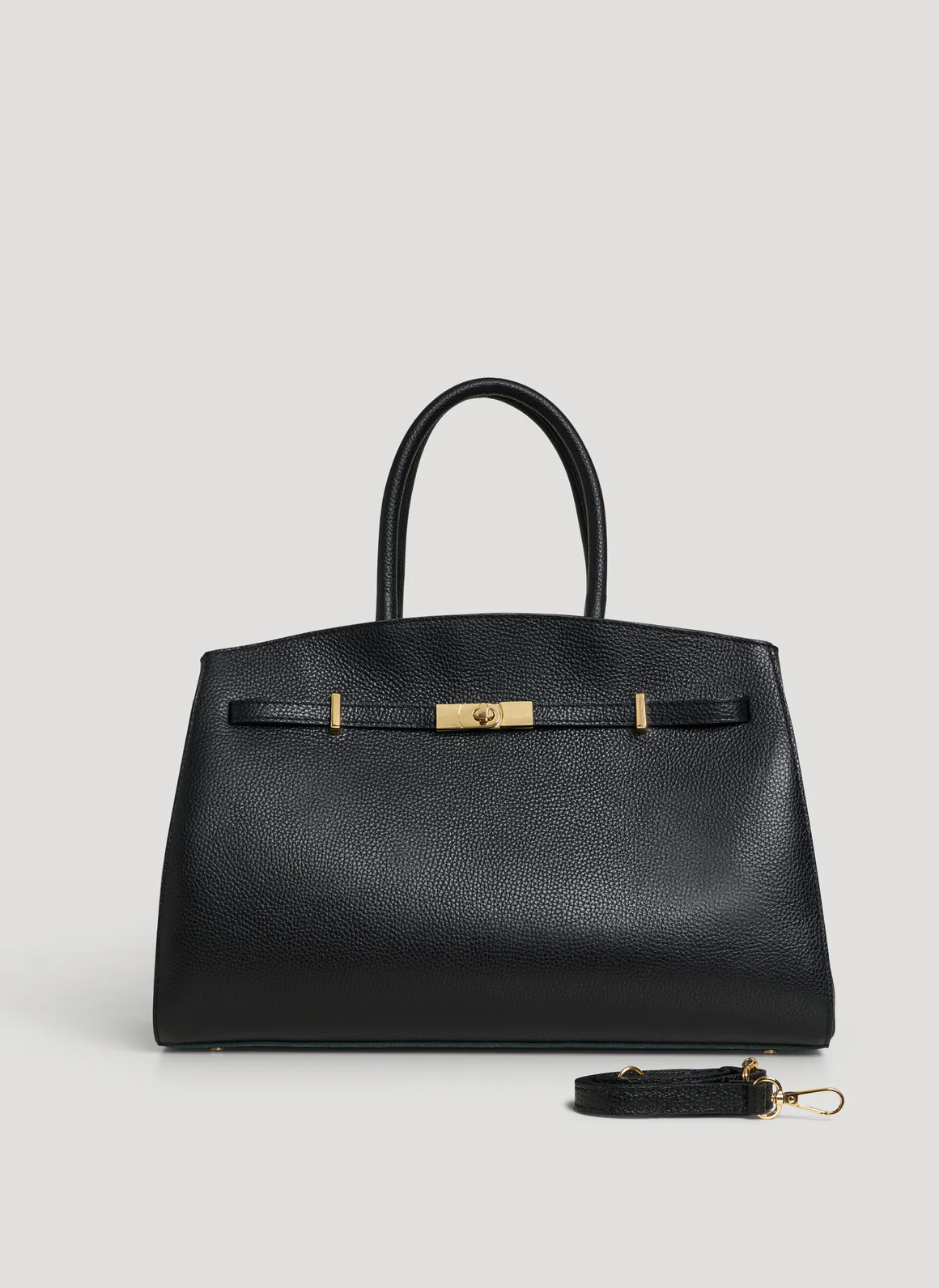 Versátil e sofisticada, pode ser usada à mão, no braço ou a tiracolo, graças à alça ajustável e removível. O interior espaçoso permite transportar documentos A4 e computador portátil, tornando-a ideal para o dia a dia urbano.