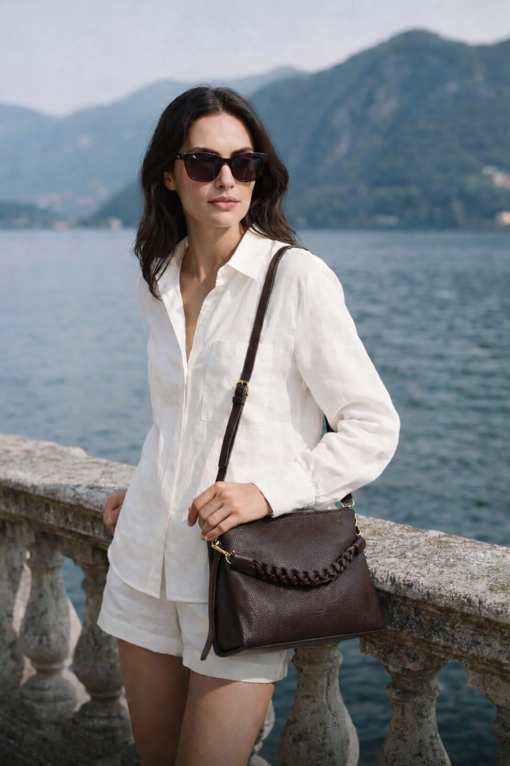 A mala VERONA nasce de uma estética que valoriza textura, volume e equilíbrio. O seu design entrançado em pele Dollaro confere-lhe presença, mantendo uma elegância discreta e intemporal.