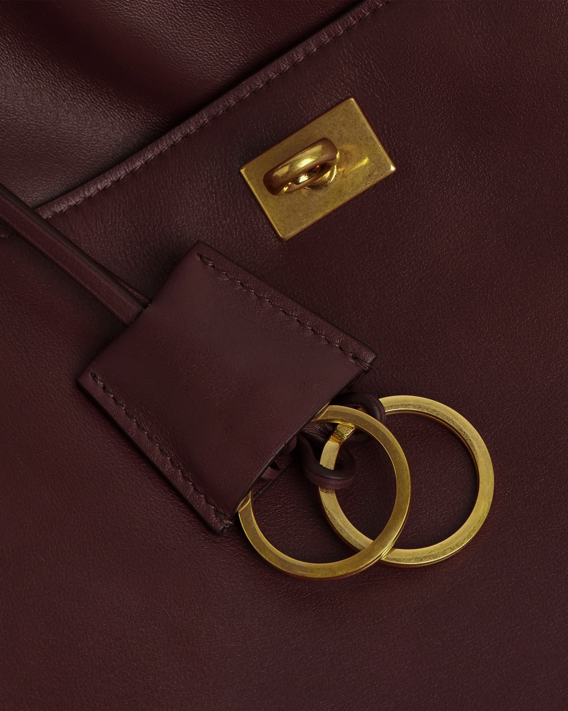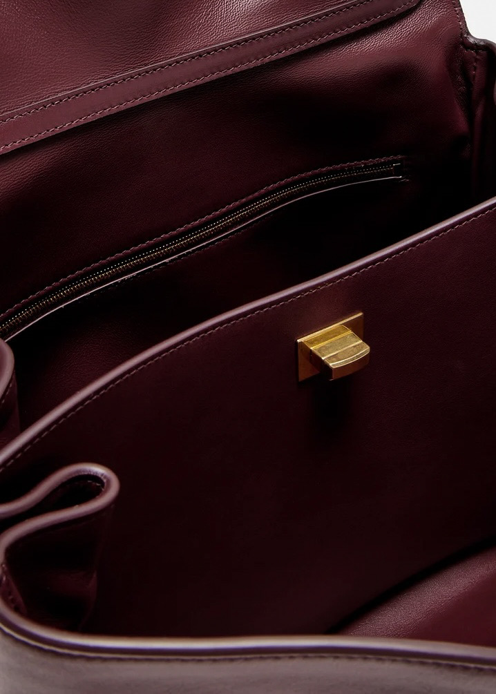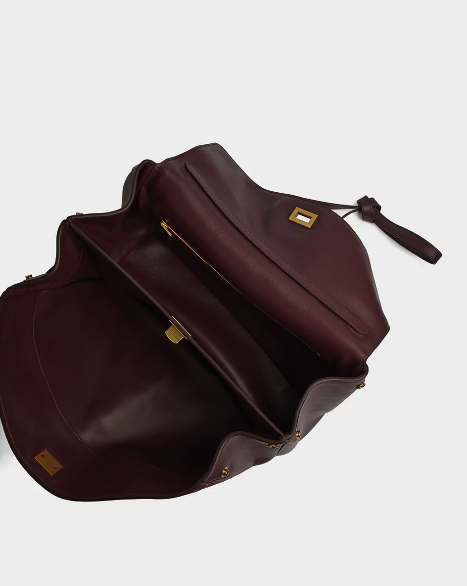 Confeccionada em couro legítimo liso, distingue-se pelo acabamento minimalista e pelas ferragens em metal dourado acetinado, símbolos da sofisticação intemporal da marca.