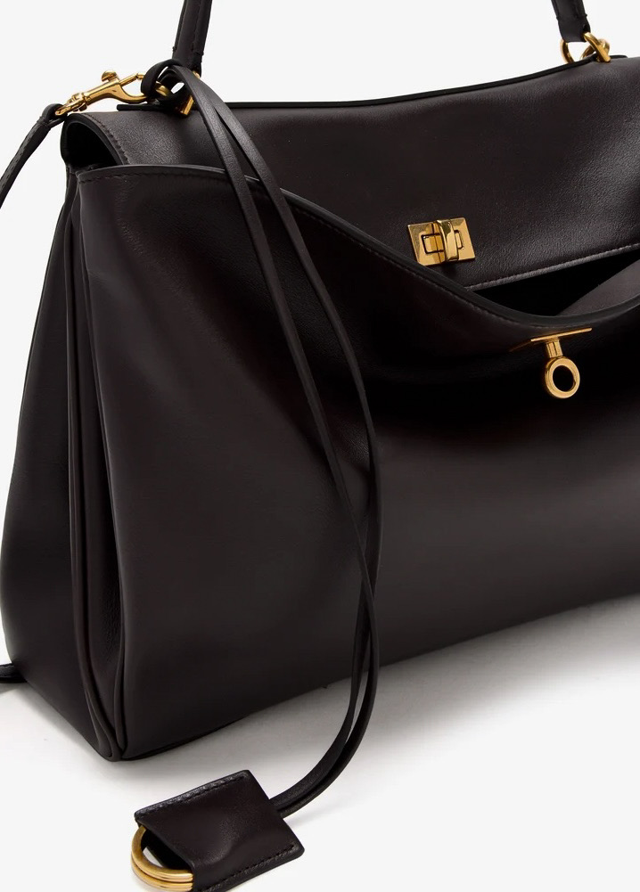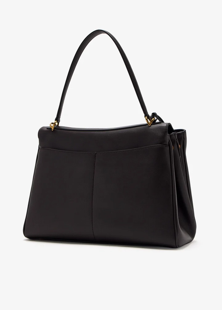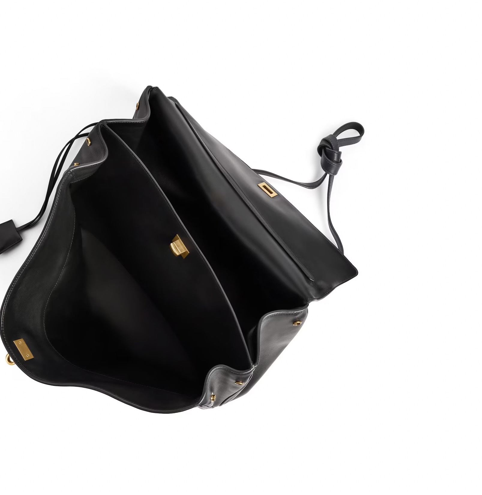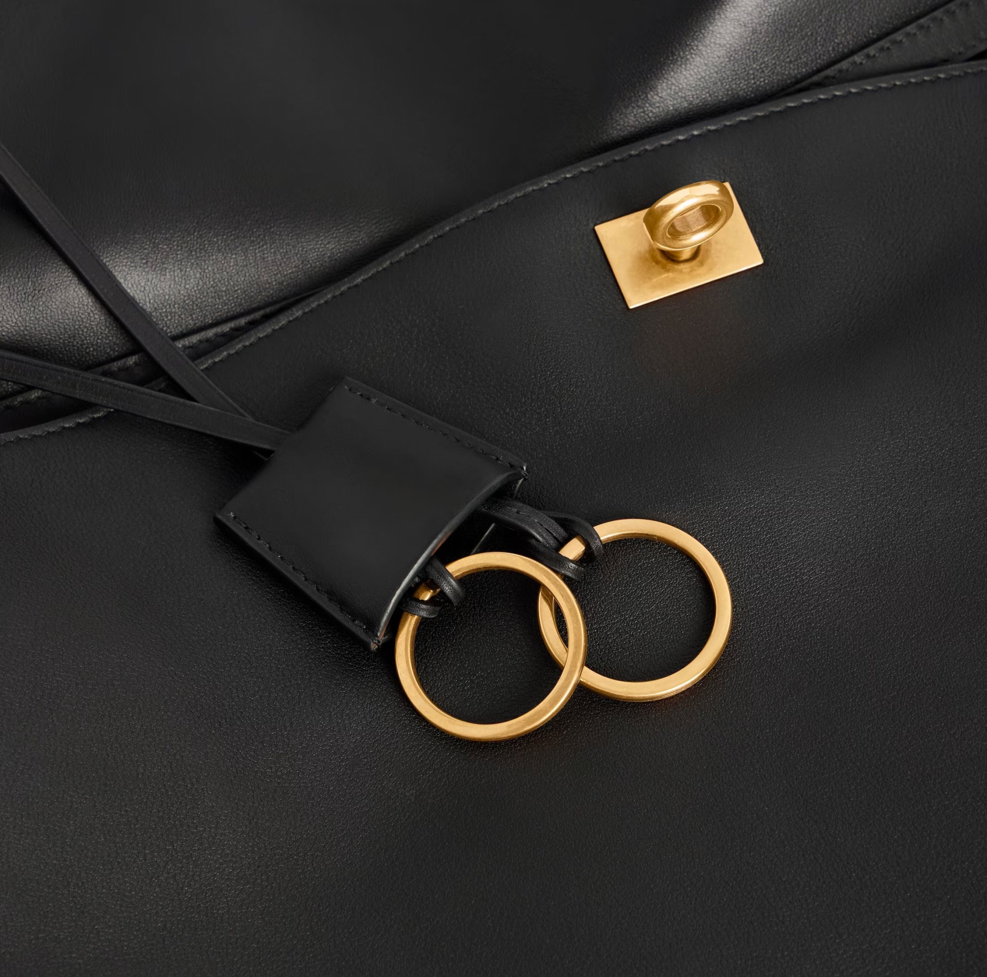 Confeccionada em couro legítimo liso, distingue-se pelo acabamento minimalista e pelas ferragens em metal dourado acetinado, símbolos da sofisticação intemporal da marca.