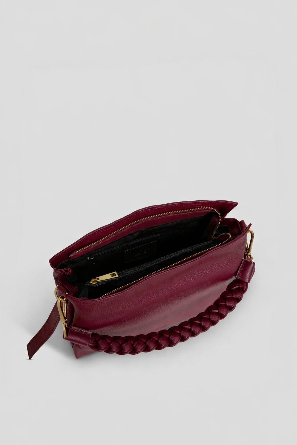Mala em pele Dollaro entrançada, com alça de ombro e tiracolo.