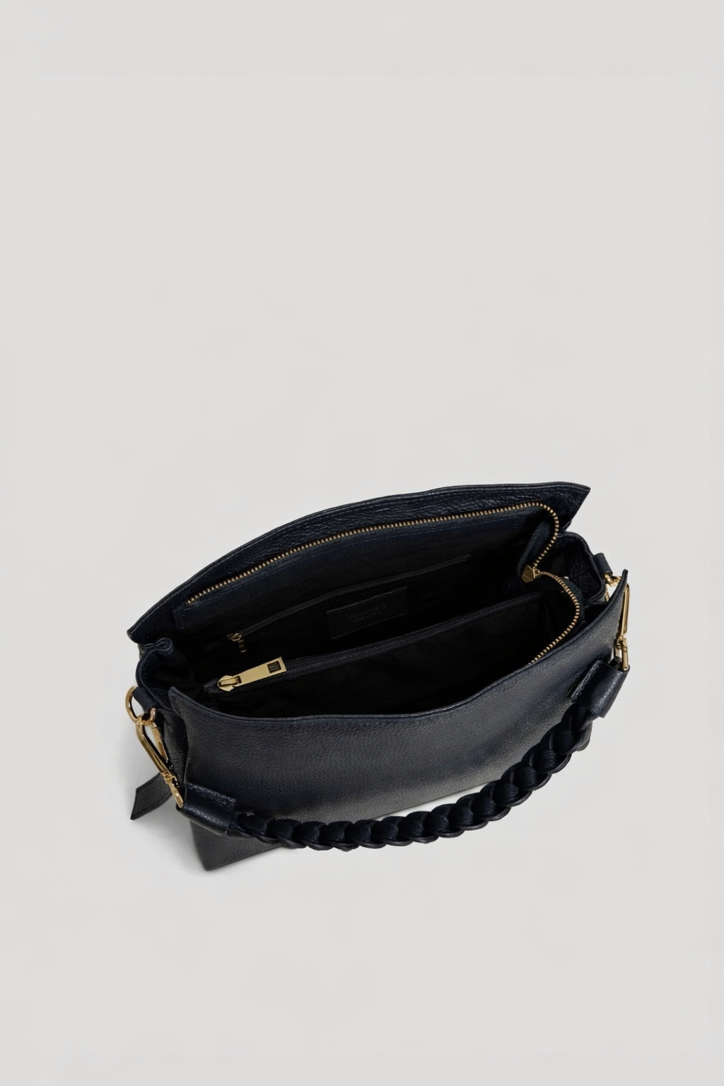 Mala em pele Dollaro entrançada, com alça de ombro e tiracolo.