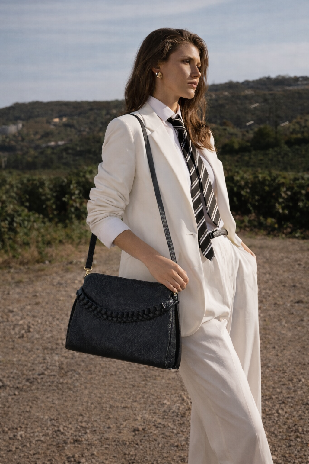 A mala VERONA nasce de uma estética que valoriza textura, volume e equilíbrio. O seu design entrançado em pele Dollaro confere-lhe presença, mantendo uma elegância discreta e intemporal.