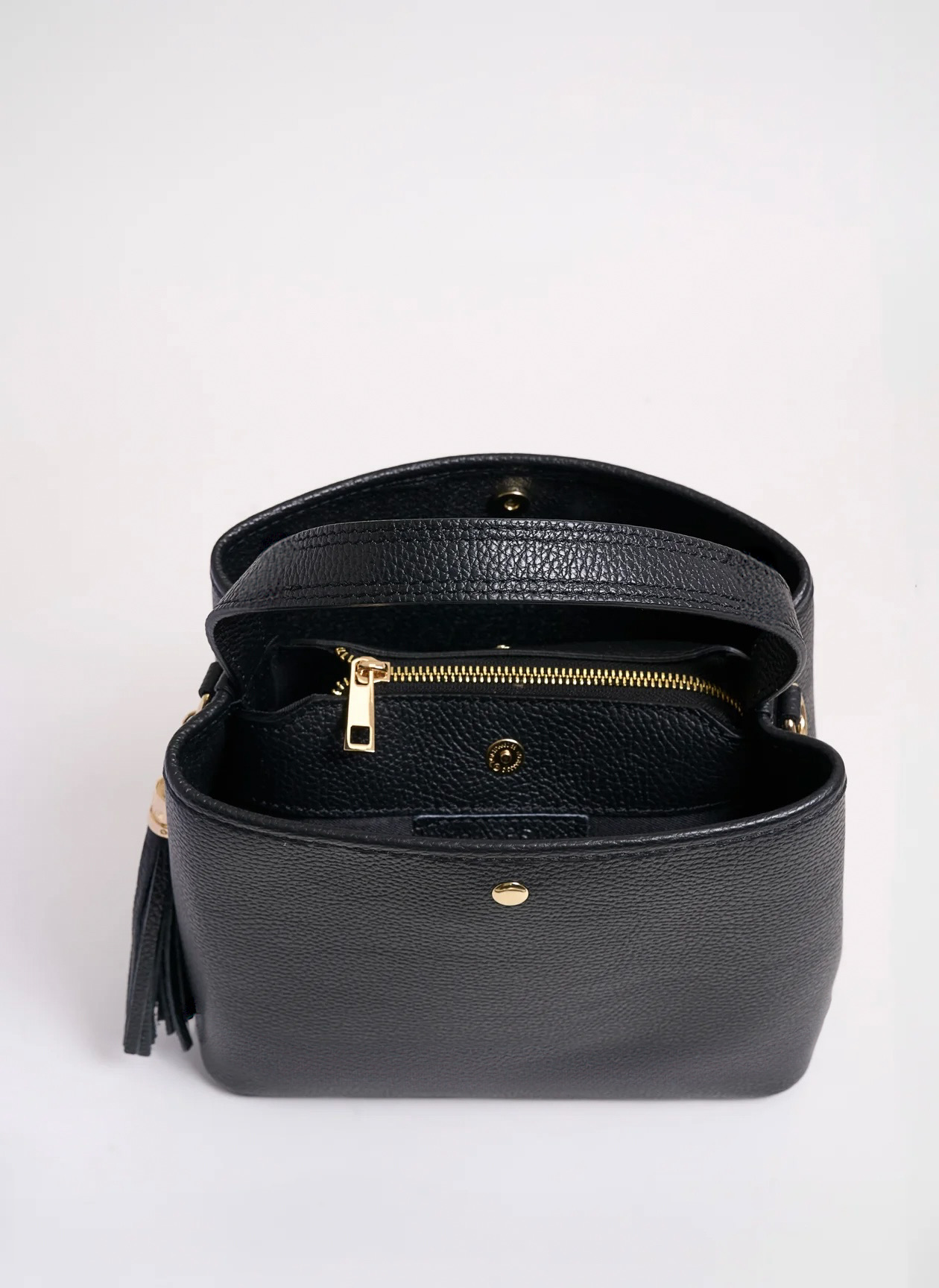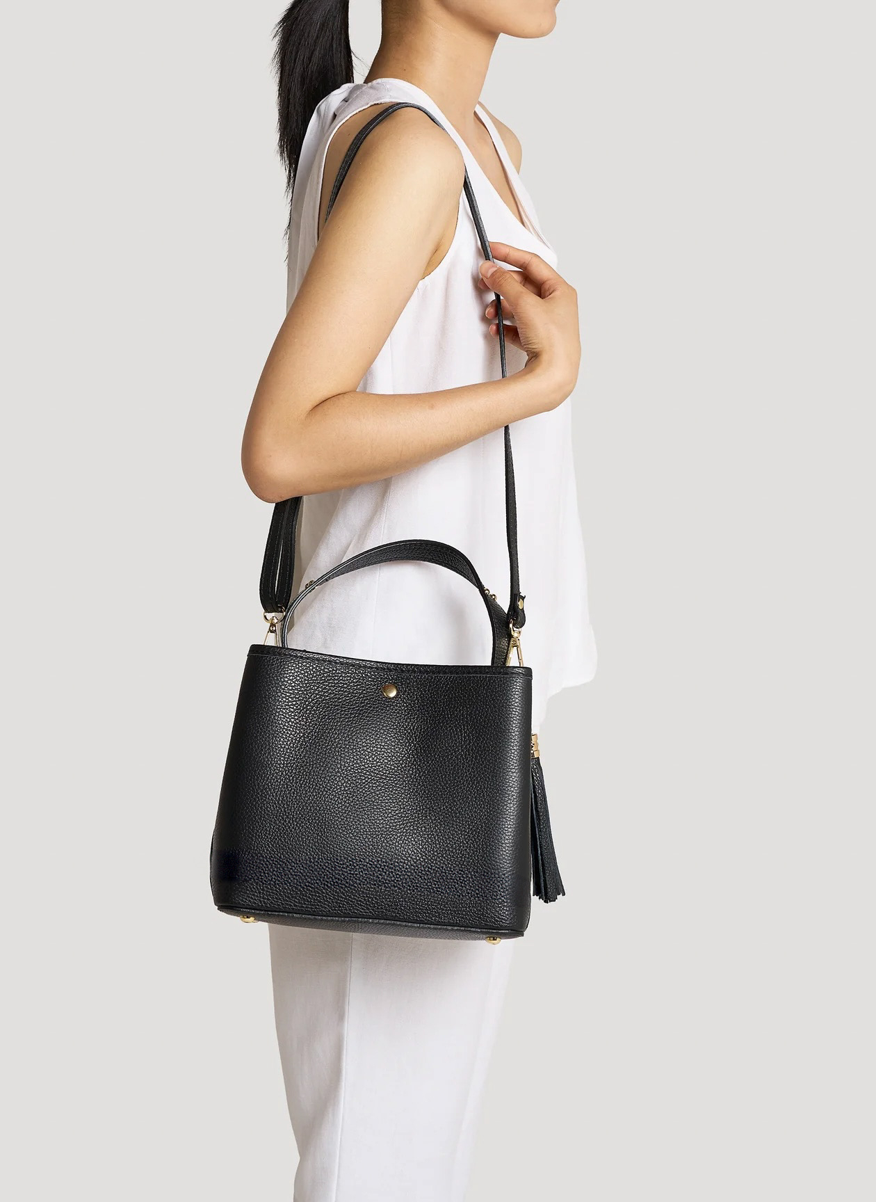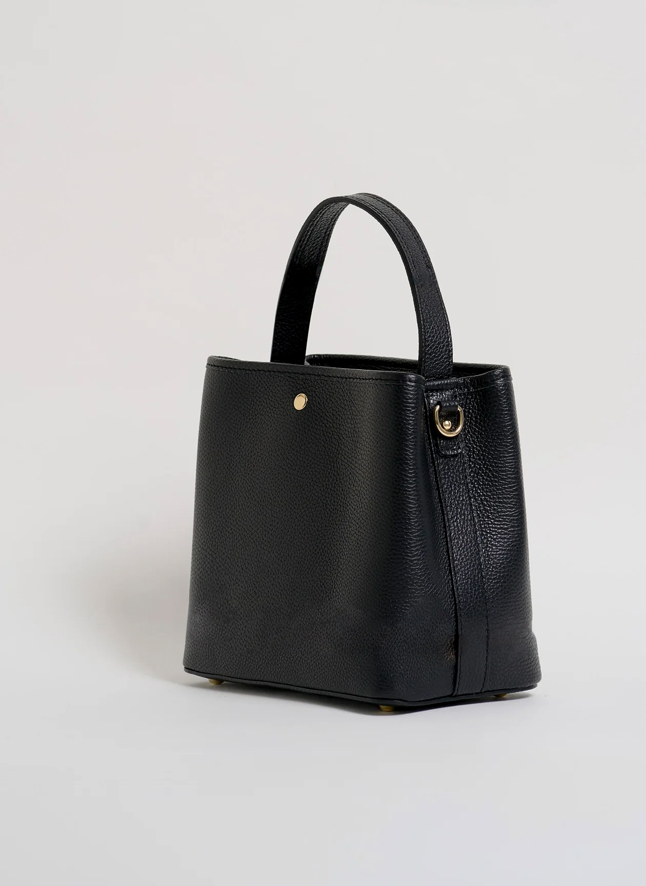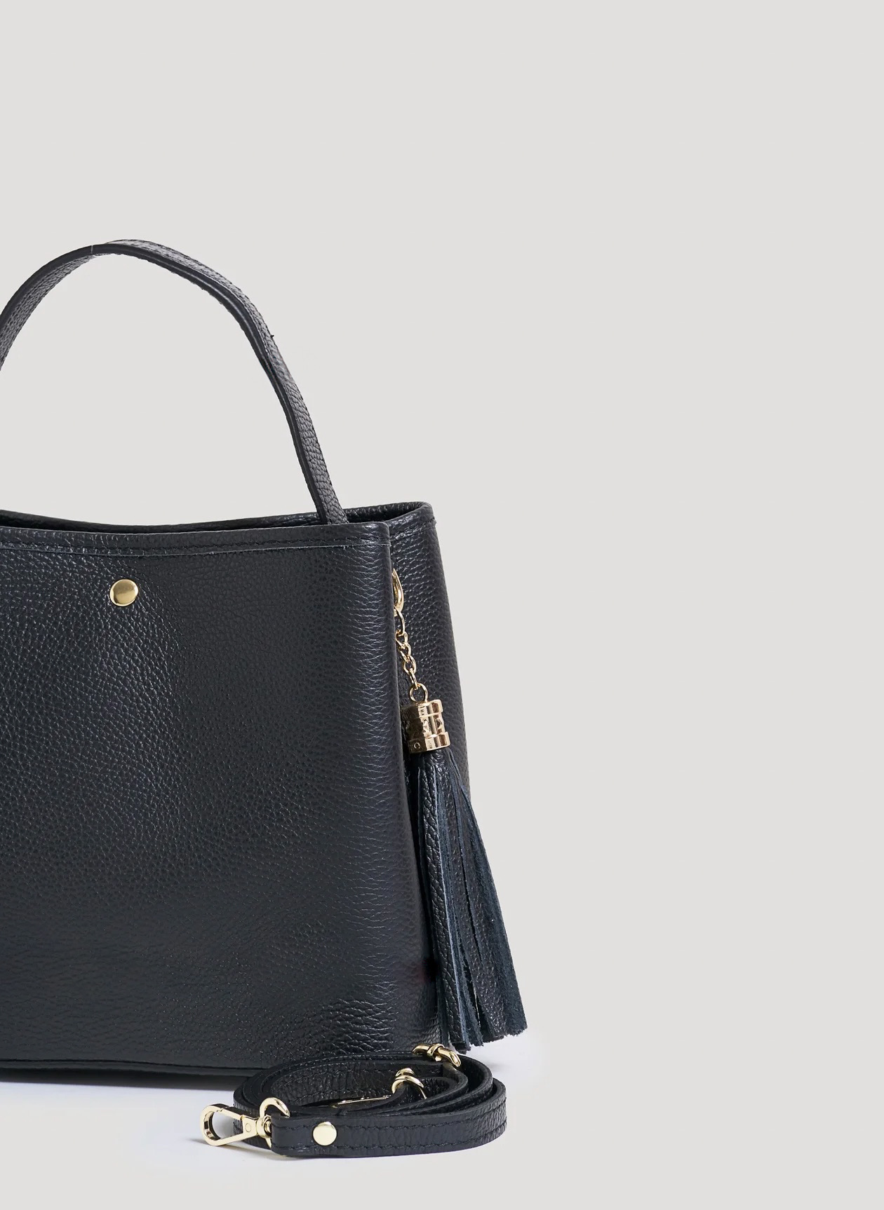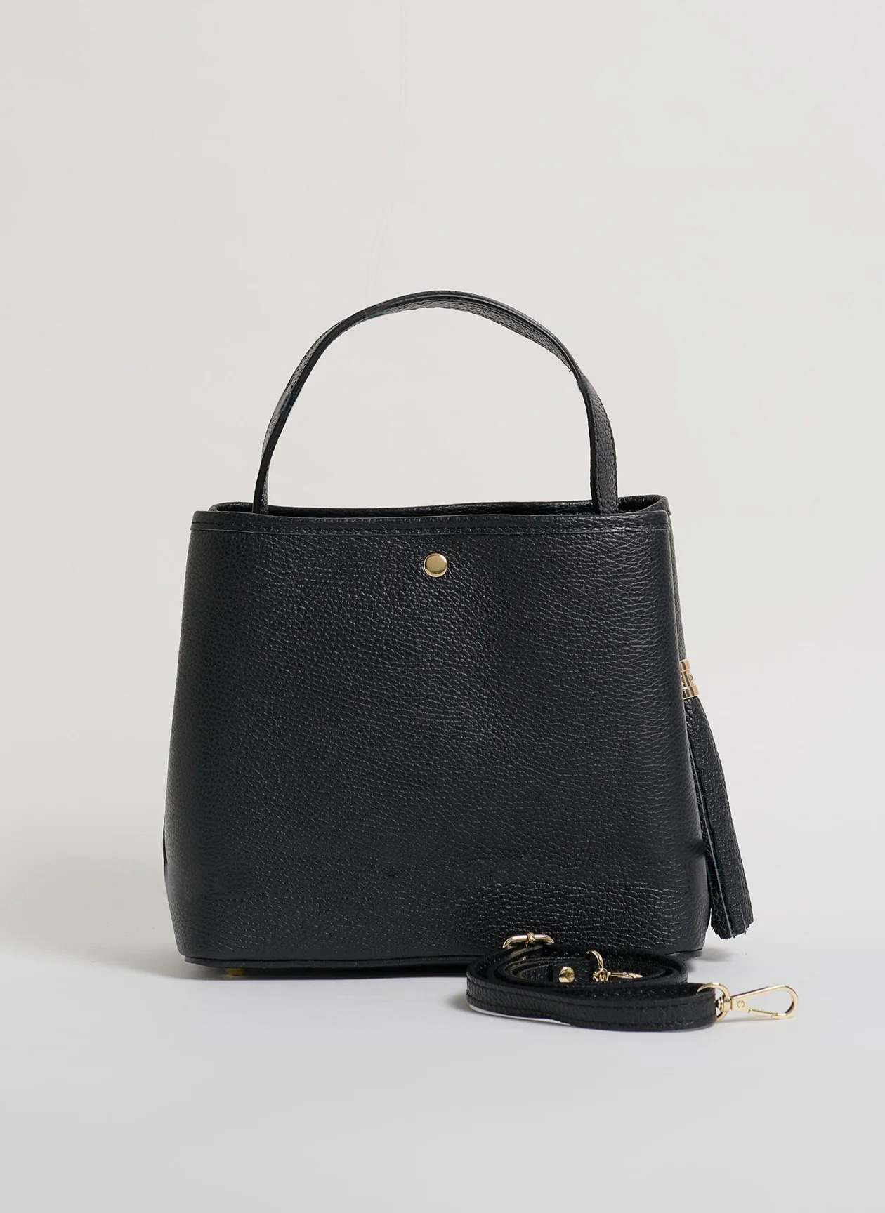 A mala VERONA é inteiramente feita à mão na Toscana, Itália, em pele granulada Dollaro, com acessórios em aço inoxidável na elegante cor light gold.